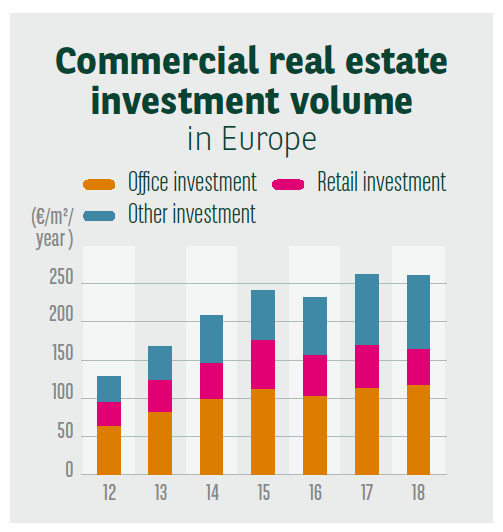 The investment market followed the same trend as invested volumes remained at a high level, with €264.5bn invested in Europe.