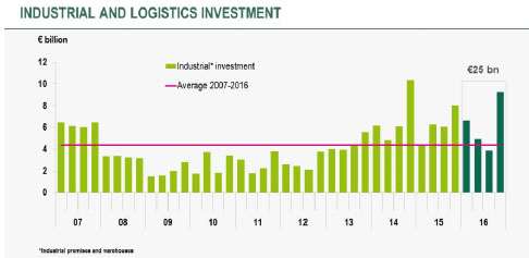 The investment market for industrial and logistics premises stabilised at €25 bn in 2016 despite a climate of political uncertainties.