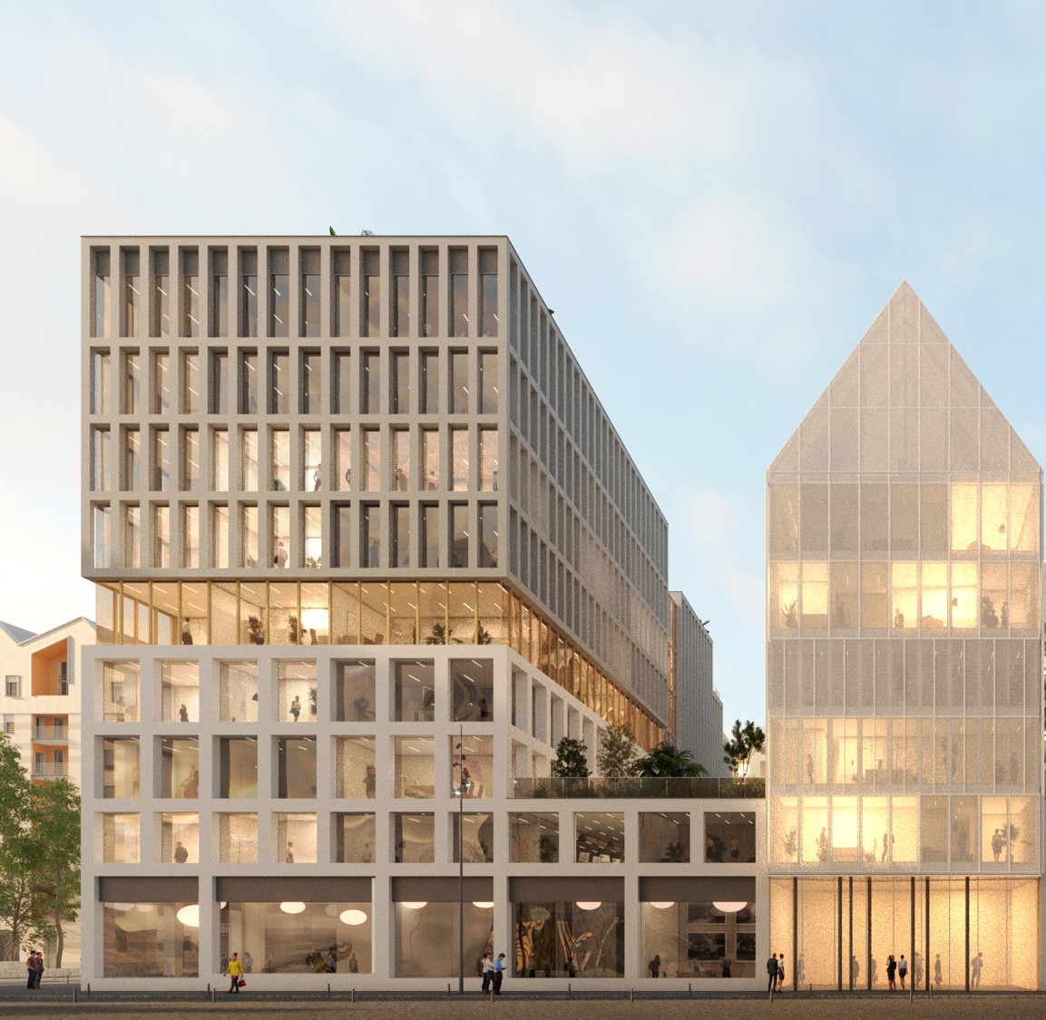 At 800 meters from Saint-Jean train station and in the immediate vicinity of other transportation facilities, Tribequa enjoys an excellent location in the heart of a mixed-use project in the Bordeaux Euratlantique district. The off-plan property comprises 10,500 sqm of offices. Developped by BNP Paribas Real Estate Property Development, the building has been bought on a speculative basis.